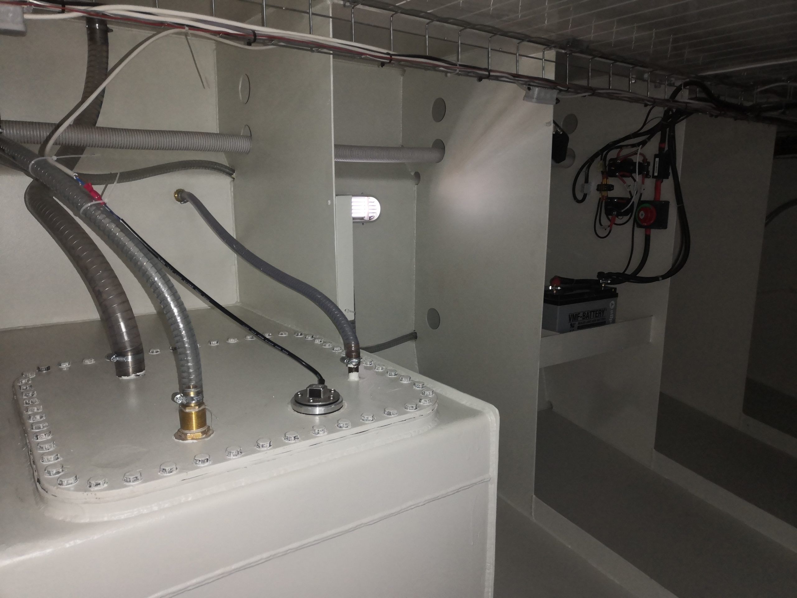 Nádrže – pitná voda, palivová a fekální nádrž, balastní nádrže (vyvážení trupu)