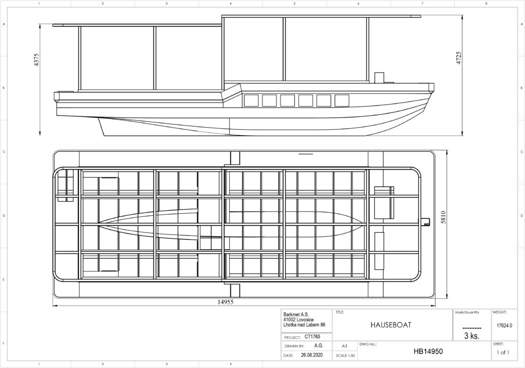 Nejprve je hausbót postaven v naší výrobní hale v Lovosicích a následně dopravena do místa Vašeho kotviště.